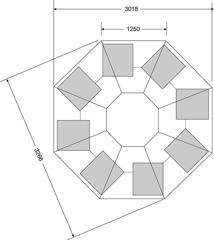 8-Eck-Werkbank (Serie VG) mit 8 x 1 Schublade (180 mm), 1 Tür (540 mm)
