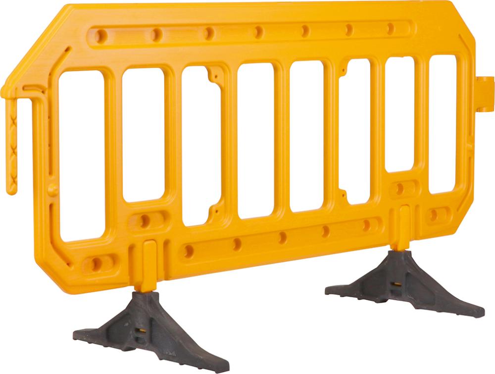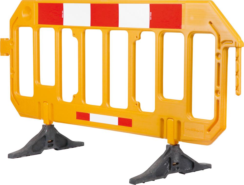 Das Absperrgitter für den Außen- und Innenbereich hat eine hohe Standsicherheit. • Material: Kunststoff • Drehbare Füße: platzsparend in der Lagerung und im Transport • Farben: gelb oder weiß mit retroreflektierender Tastenfolie Typ RA 1