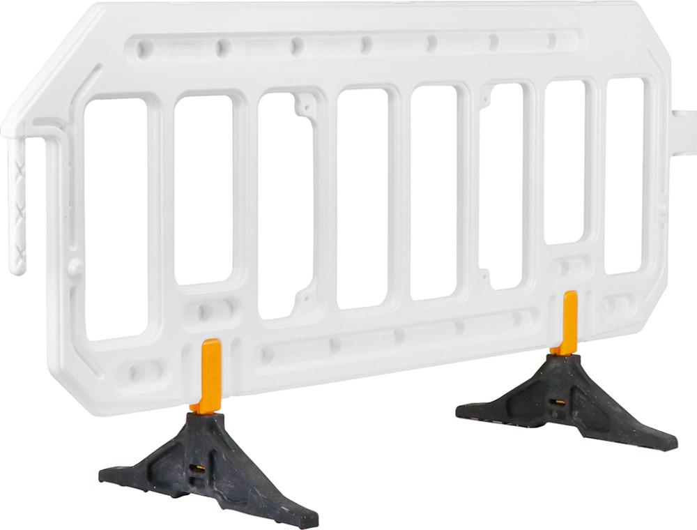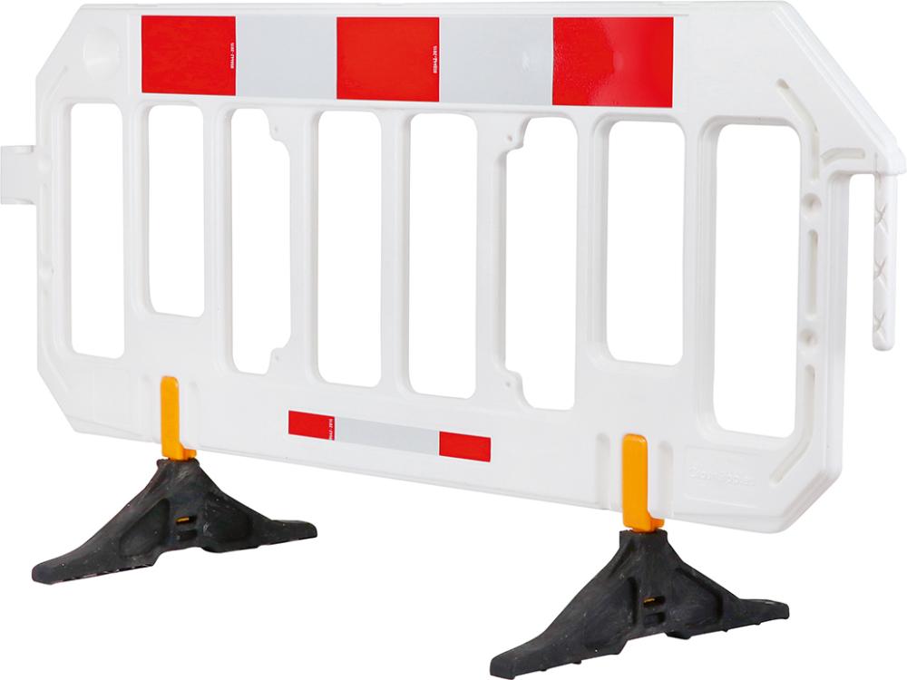 Das Absperrgitter für den Außen- und Innenbereich hat eine hohe Standsicherheit. • Material: Kunststoff • Drehbare Füße: platzsparend in der Lagerung und im Transport • Farben: gelb oder weiß mit retroreflektierender Tastenfolie Typ RA 1