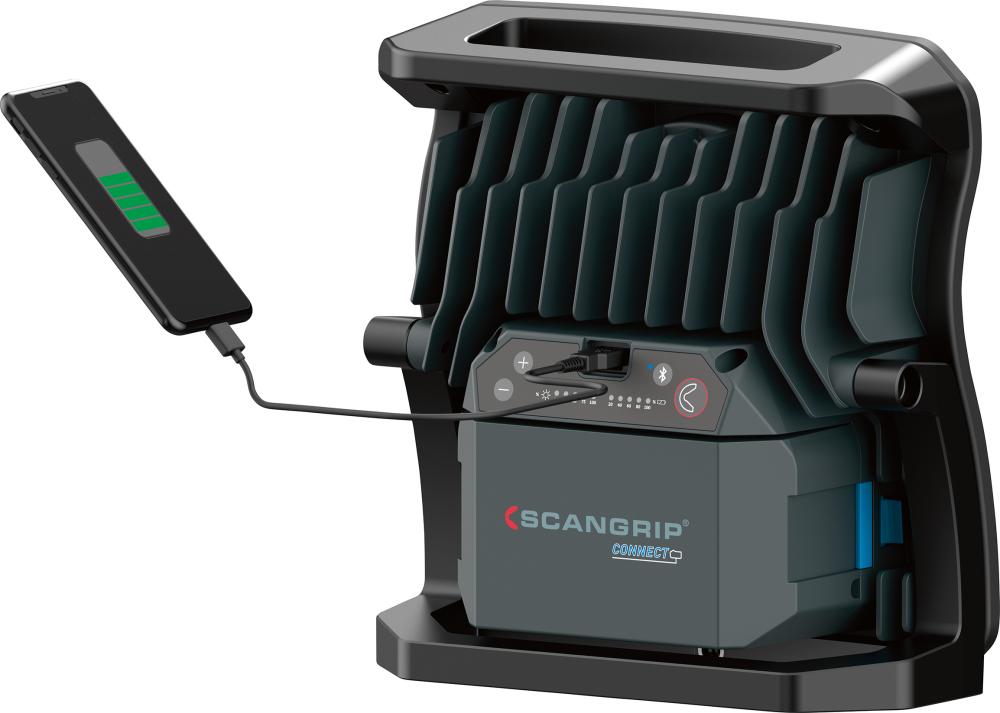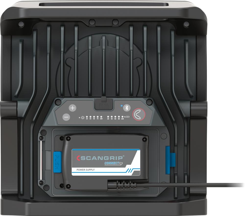 • Betrieb direkt über 18-V-Akkus des CAS-Systems oder Scangrip-CAS-Netzteil sowie 18/20-V-Akkus führender Elektrowerkzeugmarken unter Verwendung eines Schnittstellen-Adapters der Connector-Serie