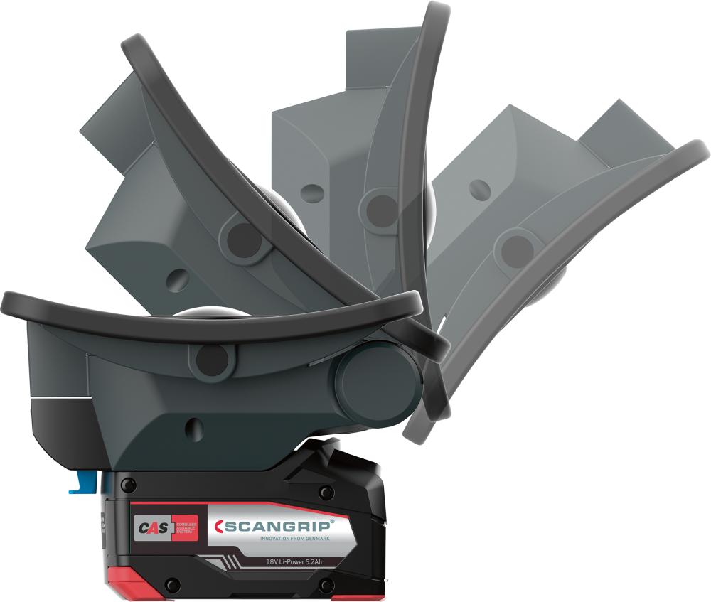 • Betrieb direkt über 18-V-Akkus des CAS-Systems oder Scangrip-CAS-Netzteil sowie 18/20-V-Akkus führender Elektrowerkzeugmarken unter Verwendung eines Schnittstellen-Adapters der Connector-Serie