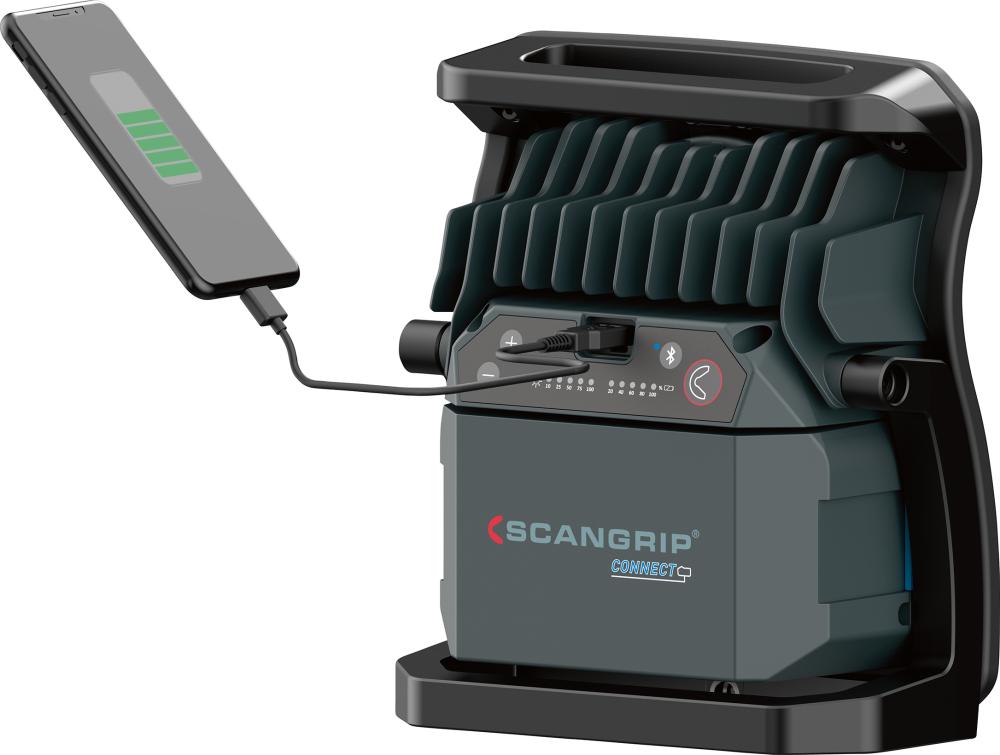 • Betrieb direkt über 18-V-Akkus des CAS-Systems oder Scangrip-CAS-Netzteil sowie 18/20-V-Akkus führender Elektrowerkzeugmarken unter Verwendung eines Schnittstellen-Adapters der Connector-Serie