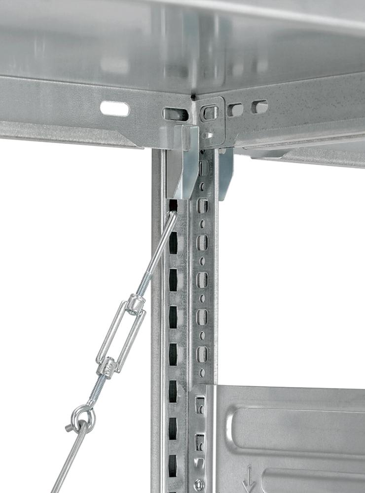 • Sicherheit: Regale mit einem Höhen-/Tiefenverhältnis größer als 4:1 müssen gegen Kippen gesichert werden (DGUV Regel 108-007)