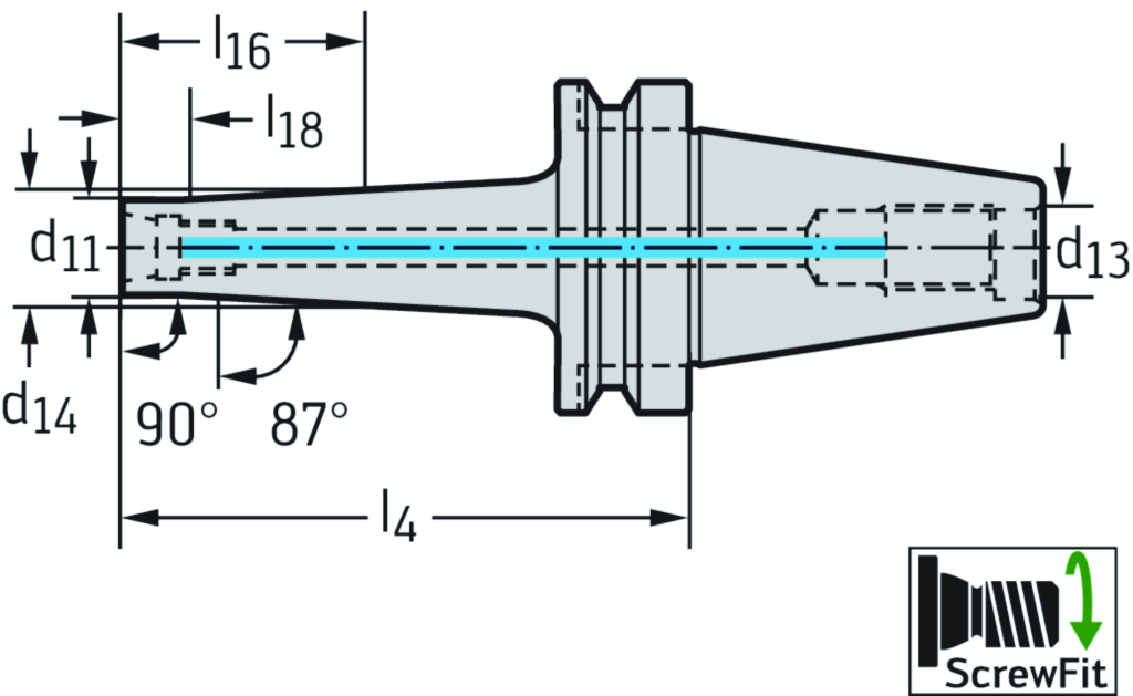 Aufnahme ASME B5.50 CAT-40 AK540 • inch • Für ScrewFit-Frontstücke • d1=40 • d11=T28