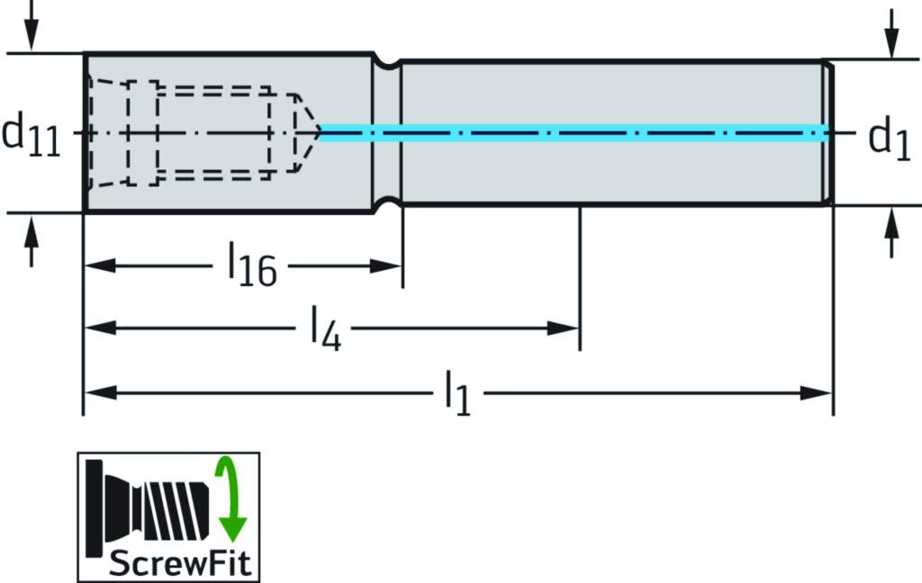 Aufnahme DIN 1835 A AK510 • inch • Für ScrewFit-Frontstücke • d1=1 1/4 • d11=T28