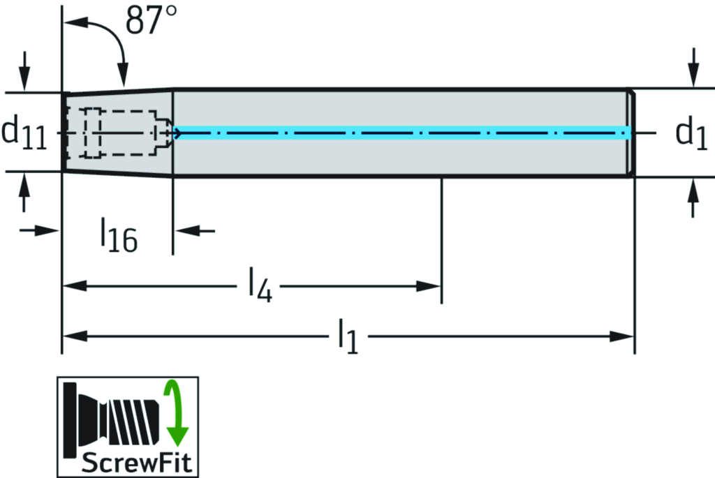 Aufnahme DIN 1835 A AK510 • inch • Für ScrewFit-Frontstücke • d1=1 1/4 • d11=T36