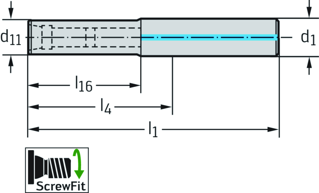 Aufnahme DIN 1835 A AK510 • inch • Für ScrewFit-Frontstücke • d1=1 1/2 • d11=T36