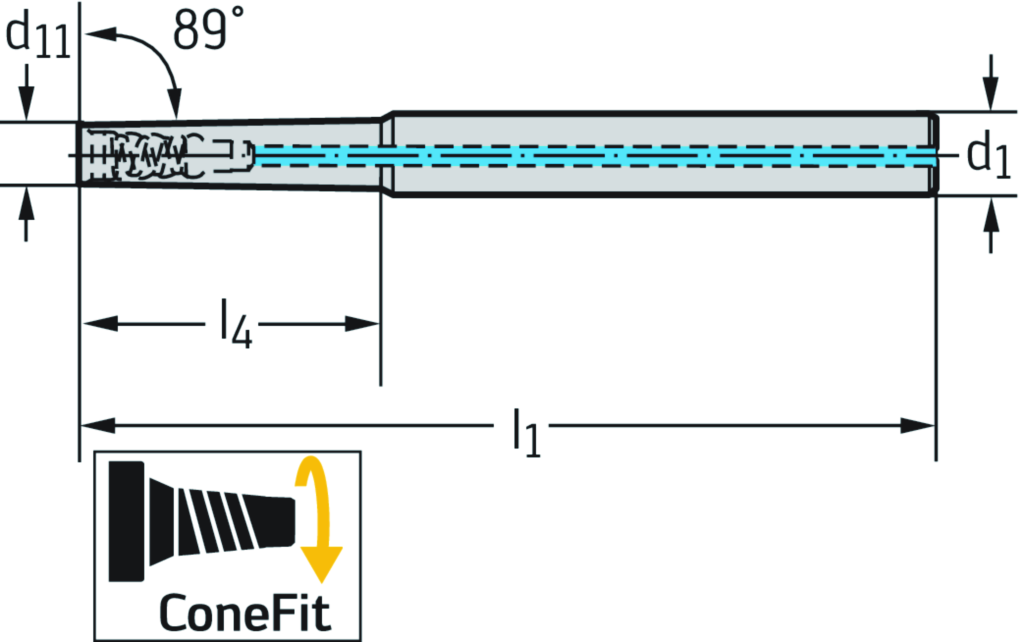 Aufnahme DIN 6535HA AK610 • metrisch • Für ConeFit-Fräsköpfe • Mit VHM-Schaft • d1=20 • d11=E16