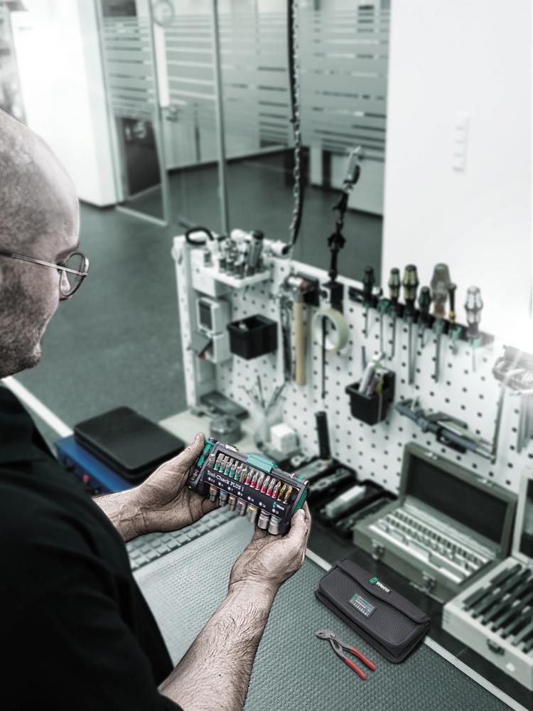 Lieferung: In Kunststoff-Klapphalter, mit Textiltasche, geeignet für Wera 2go.