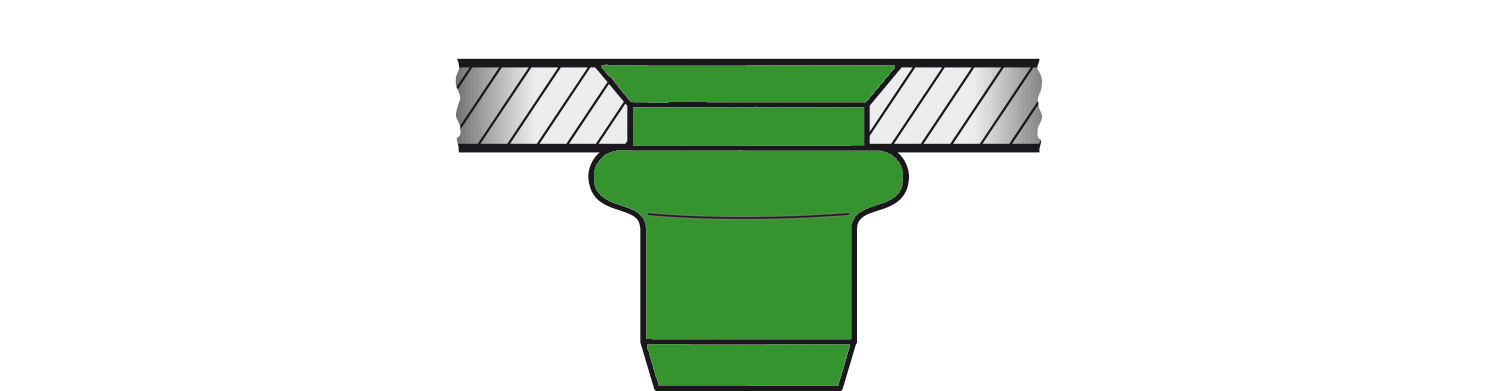 Der Setzkopf ist der Teil der Blindnietmutter, der auf der sichtbaren Seite des Bauteiles aufliegt.