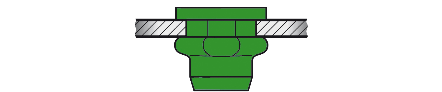 Der Setzkopf ist der Teil der Blindnietmutter, der auf der sichtbaren Seite des Bauteiles aufliegt.