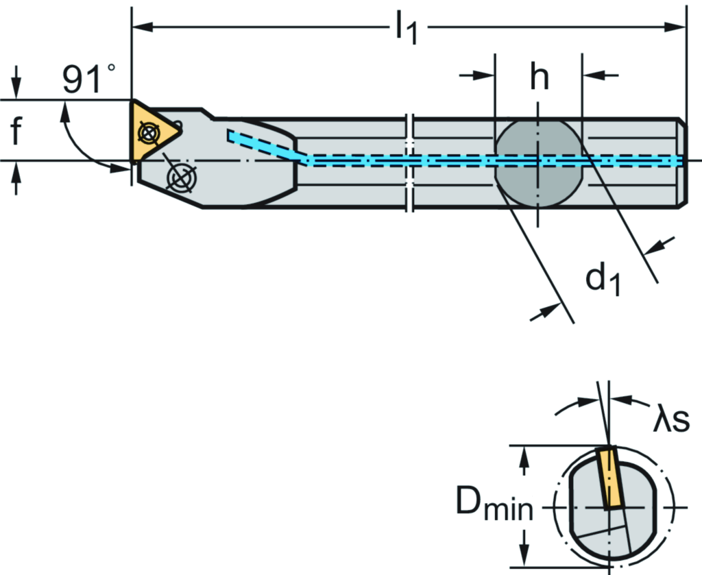 Bohrstange – Kniehebelspannung A...-PTFN • Walter Turn • metrisch • Zylinderschaft mit Spannfläche • links • 25mm • dreieckige Platte • TN .. 1604 ..
