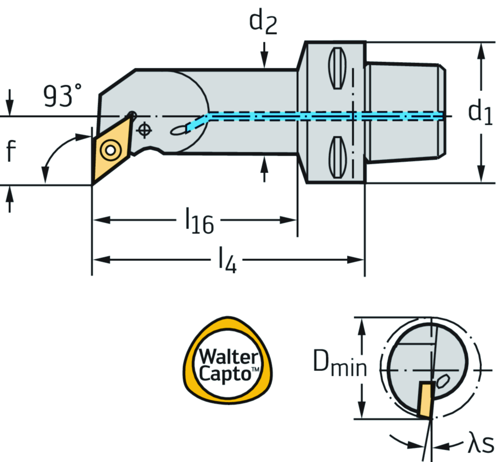 Bohrstange – Kniehebelspannung C...-PDUN • Walter Turn • metrisch • Walter CaptoTM ISO 26623 • rechts • C6 • 50mm • rhombische Platte • DN .. 1506 ..