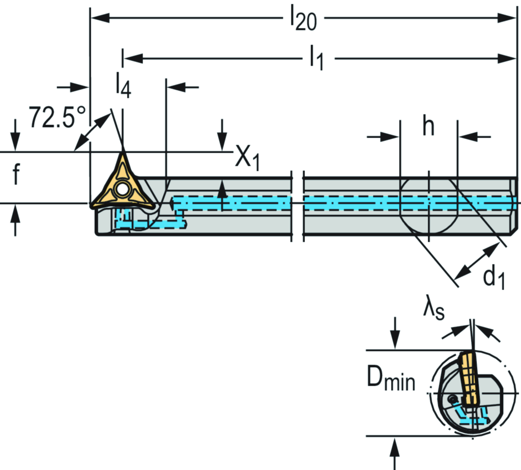 Bohrstange – Kopierdrehsystem W1210 • Walter Turn • metrisch • Zylinderschaft mit Spannfläche • links • Platte mit speziellem Profil • WL .. 2504 .. • Präzisionskühlung