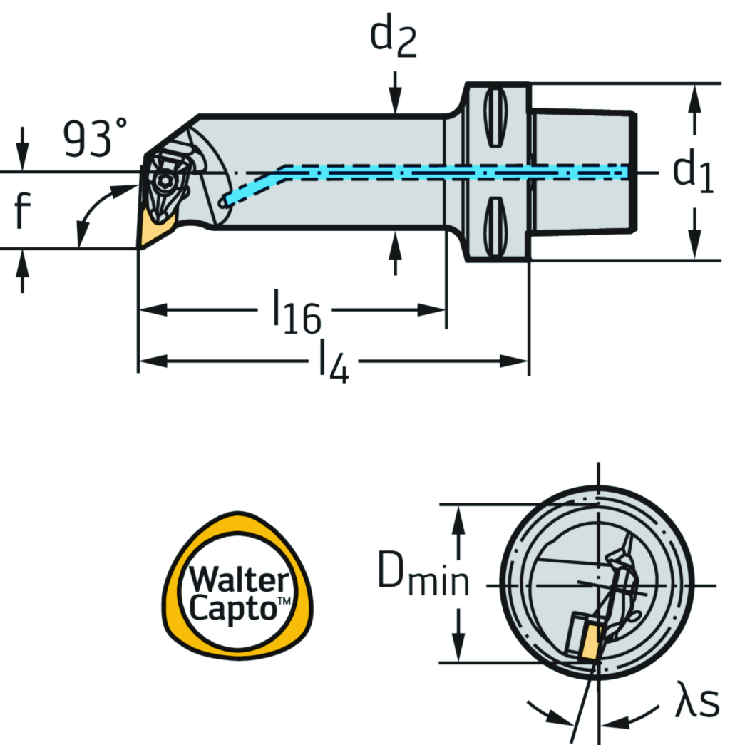 Bohrstange – Pratzenspannung C...-DDUN • Walter Turn • metrisch • Walter CaptoTM ISO 26623 • rechts • C4 • 25mm • rhombische Platte • DN .. 1104 ..