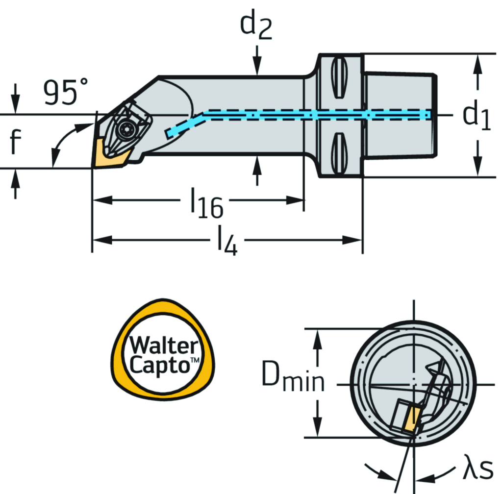 Bohrstange – Pratzenspannung C...-DCLN • Walter Turn • metrisch • Walter CaptoTM ISO 26623 • rechts • C6 • 40mm • rhombische Platte • CN .. 1606 ..