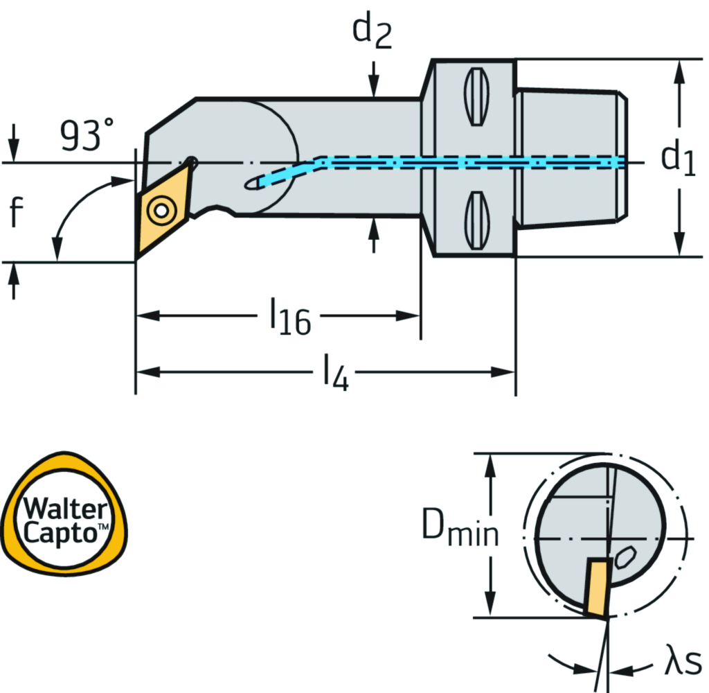 Bohrstange – Schraubenspannung C...-SDUC • Walter Turn • metrisch • Walter CaptoTM ISO 26623 • rechts • C3 • 16mm • rhombische Platte • DC .. 0702 ..