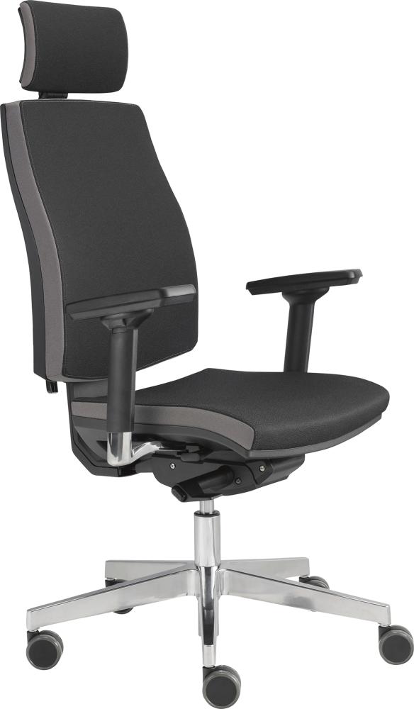 Dieser bequeme Drehstuhl hat einen ergonomischen Komfortsitz mit dicker Sitzpolsterung. • Technik: Punkt-Synchronmechanik mit Gewichteinstellung • Höhenverstellung: per Hebel mit Gasdruckfeder • Rückenlehne: stufenlose Höhenverstellung per Knopf, Arretierung an 5 Punkten möglich • Sitztiefenverstellung: Schiebesitz, verschiebbar mit Schieber • 2D-Kopfstütze: gepolstert, Höhe und Neigung verstellbar • 3D-Multifunktionsarmlehne: 3-fach verstellbar mit Softpad-PU-Auflage • Bezugsstoff: 100 % Polyester, zweifarbig mit Ziernähten • Untergestell: Aluminium-Fußkreuz poliert, Mittelsäule verchromt • Rollen: lastabhängig gebremste Doppelrollen (Ø 65 mm) für alle Böden nutzbar Lieferung: Erfolgt teilmontiert.