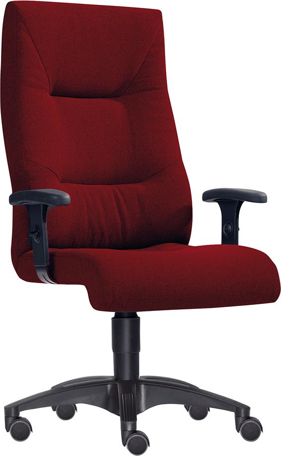 Dieser Chefsessel ist mit einem strapazierfähigen Bezugsstoff aus 100 % Polyester (wahlweise schwarz, blau oder bordeaux) oder in schwarzem Echtleder erhältlich. Mehrpreis Leder siehe Zubehör.