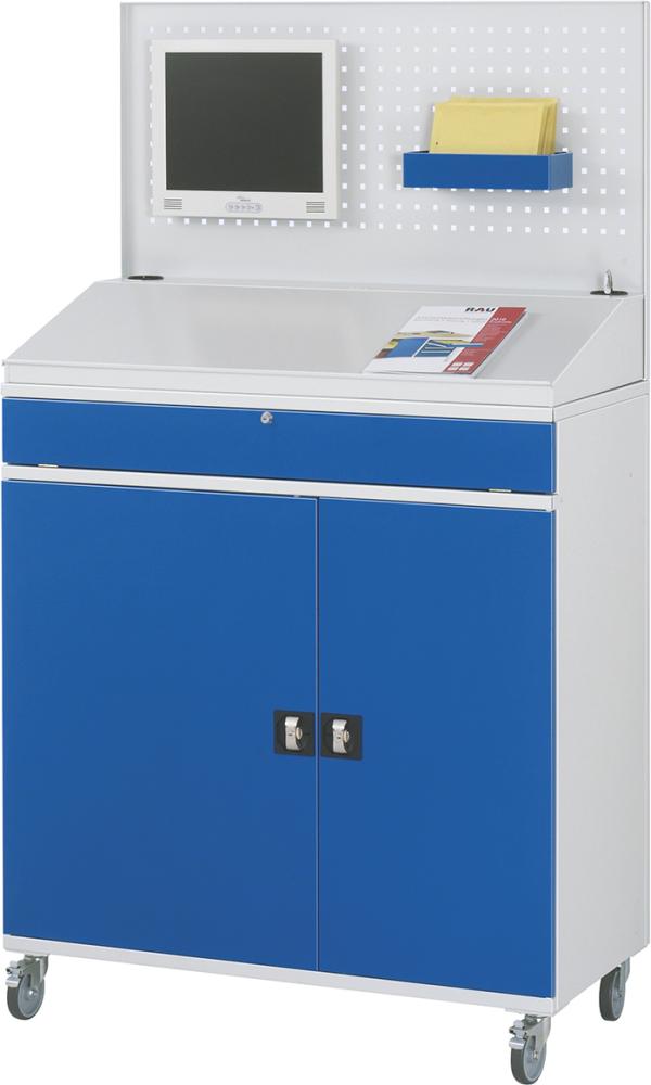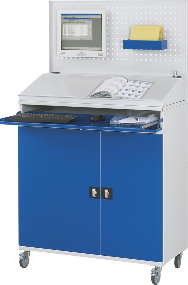 Produktinformationen "Computer-Schrank B1100xT520xH1895 mm RAL 7035/5010 mobil Gehäuse offen"