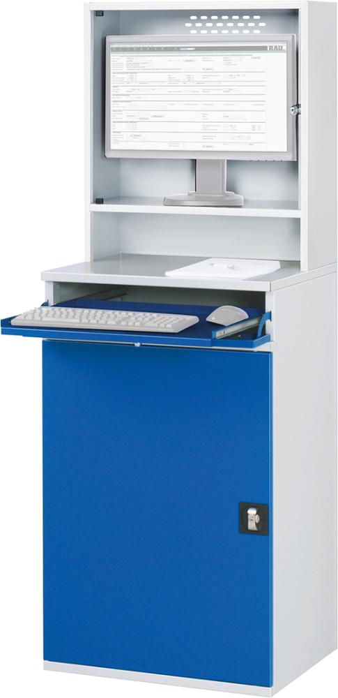 Computer-Schrank B650xT520xH1770 mm RAL 7035/5010 stationär Gehäuse mit Tür