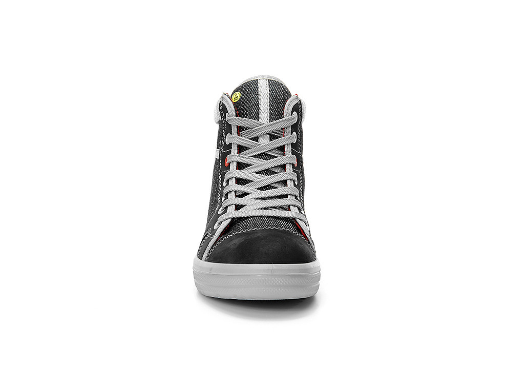 Damen-Sicherheitsschnürstiefel, SENSATION Lady Mid ESD S2, 74206-40, ELTEN MISS L10, Obermaterial: Hydrophobiertes Textilmaterial in Jeans-Optik/Hydrophobiertes Nubukleder, Textilfutter Bioactive, Gepolsterte Lasche, Ganzflächige Einlegesohle ESD PRO Lady grey, ESD-fähige Softvlies-Brandsohle, TPU/PU Sohle MISS L10, Stahlkappe, EN ISO 20345 S2 SRC, Form B