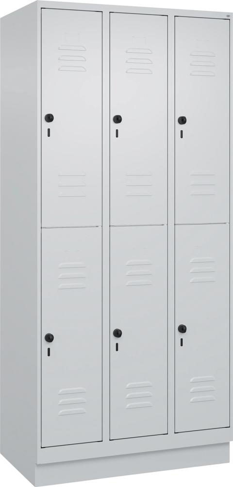 Produktinformationen "Doppelst. Schrank CLASSICB900xT500xH1950 mm RAL 7035/7035, 3x2Abteilemit 100 mm hohem Sockel"