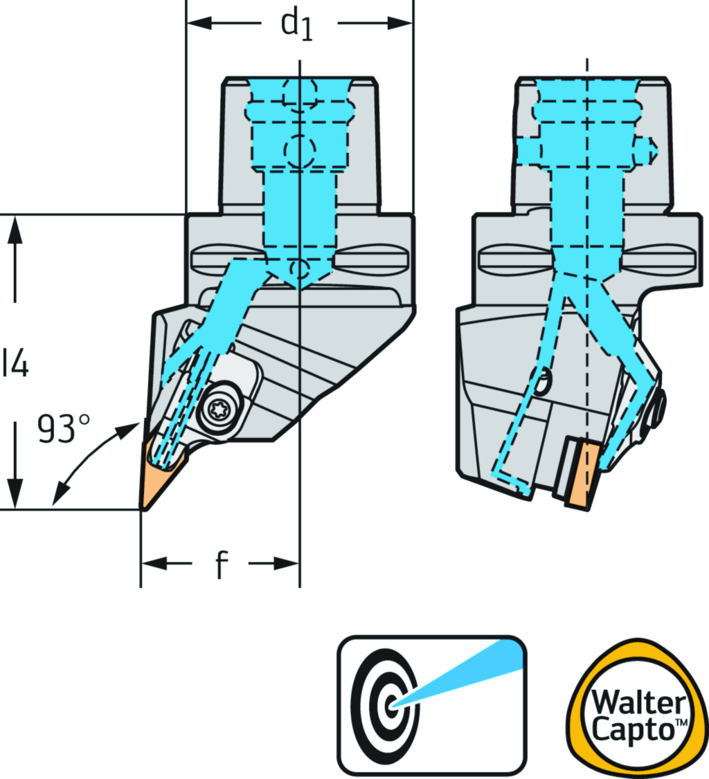 Drehhalter – Pratzenspannung C...-DVJN...-P • Walter Turn • metrisch • Walter CaptoTM ISO 26623 • κ=93° • links • C4 • rhombische Platte • VN .. 1604 .. • Präzisionskühlung