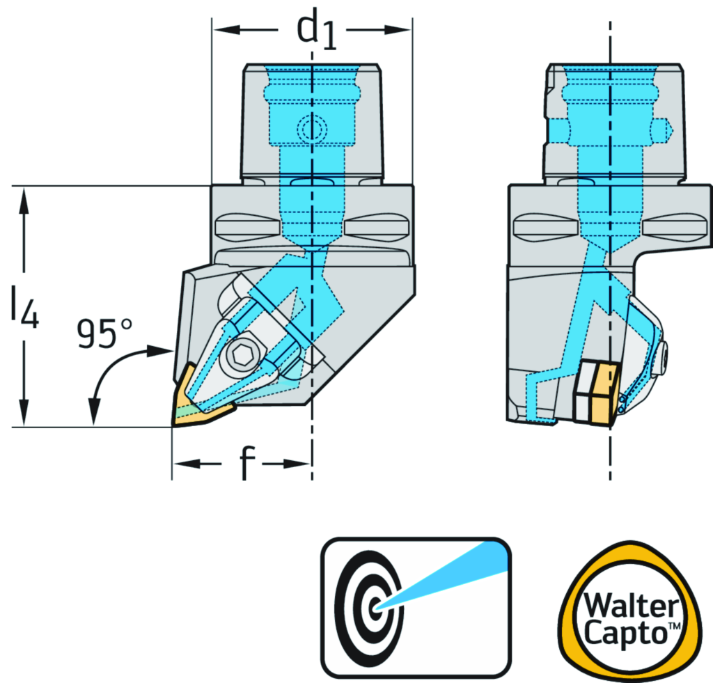 Drehhalter – Pratzenspannung C...-DWLN...-P • Walter Turn • metrisch • Walter CaptoTM ISO 26623 • κ=95° • links • C4 • Trigon-Platte • WN .. 0804 .. • Präzisionskühlung