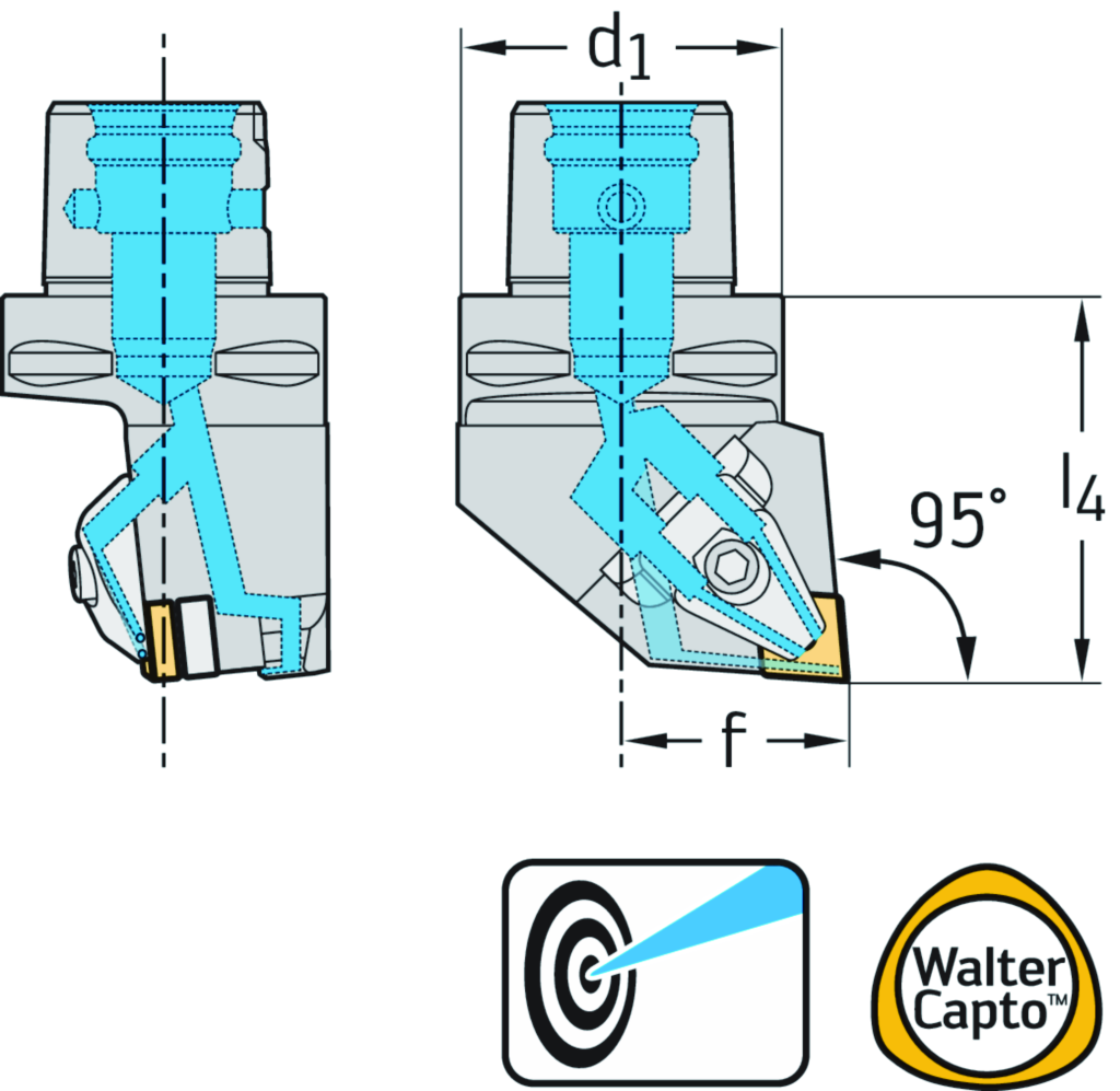 Drehhalter – Pratzenspannung C...-DCLN...-P • Walter Turn • metrisch • Walter CaptoTM ISO 26623 • κ=95° • rechts • C5 • rhombische Platte • CN .. 1606 .. • Präzisionskühlung