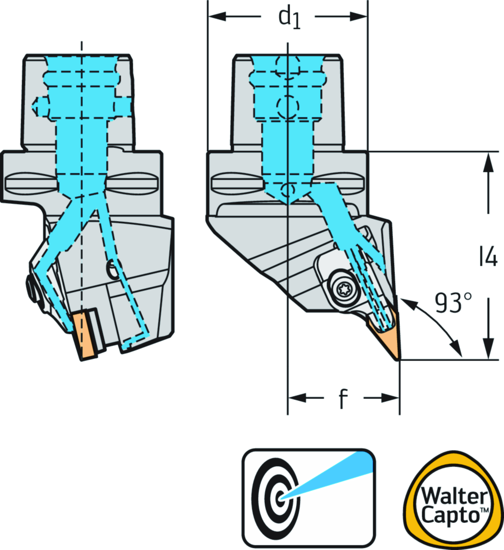 Drehhalter – Pratzenspannung C...-DVJN...-P • Walter Turn • metrisch • Walter CaptoTM ISO 26623 • κ=93° • rechts • C6 • rhombische Platte • VN .. 1604 .. • Präzisionskühlung
