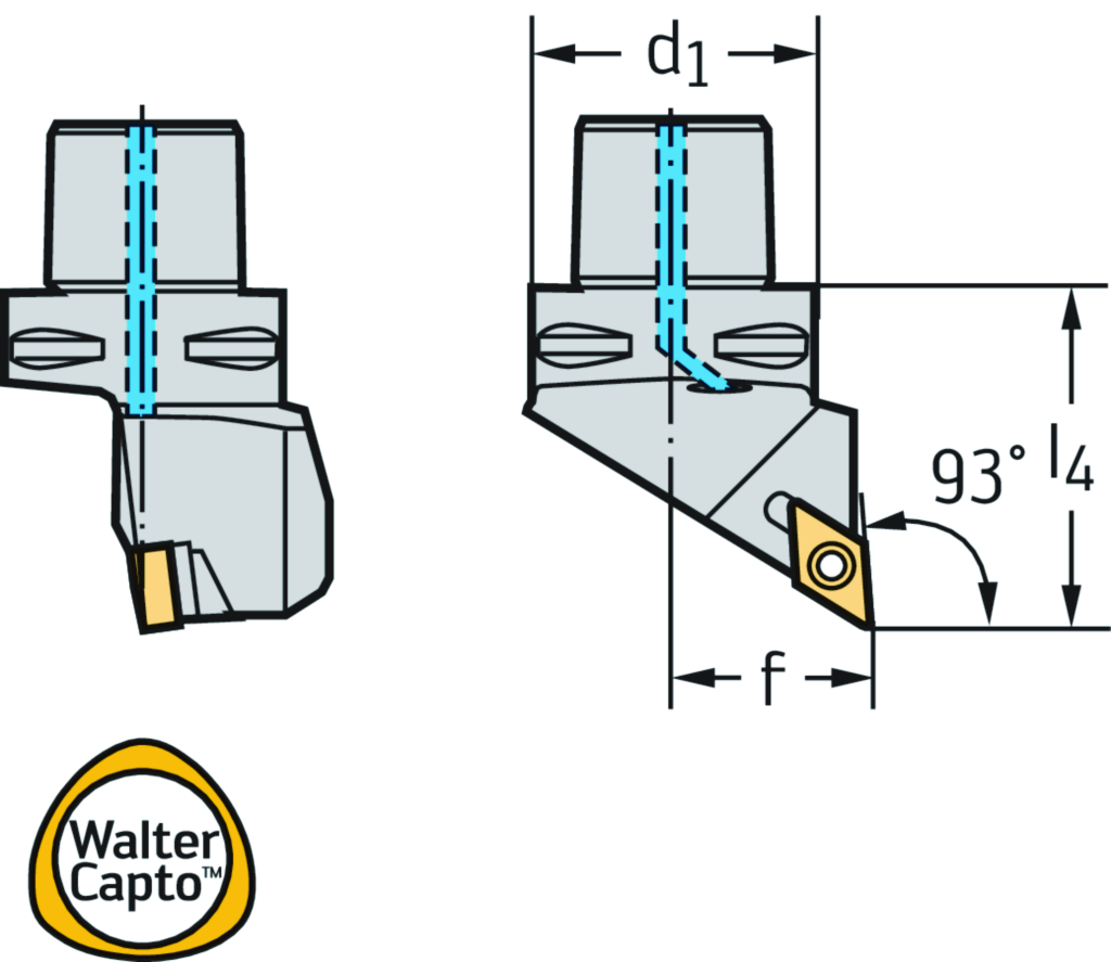 Drehhalter – Schraubenspannung C...-SDJC • Walter Turn • metrisch • Walter CaptoTM ISO 26623 • κ=93° • rechts • C4 • rhombische Platte • DC .. 11T3 ..