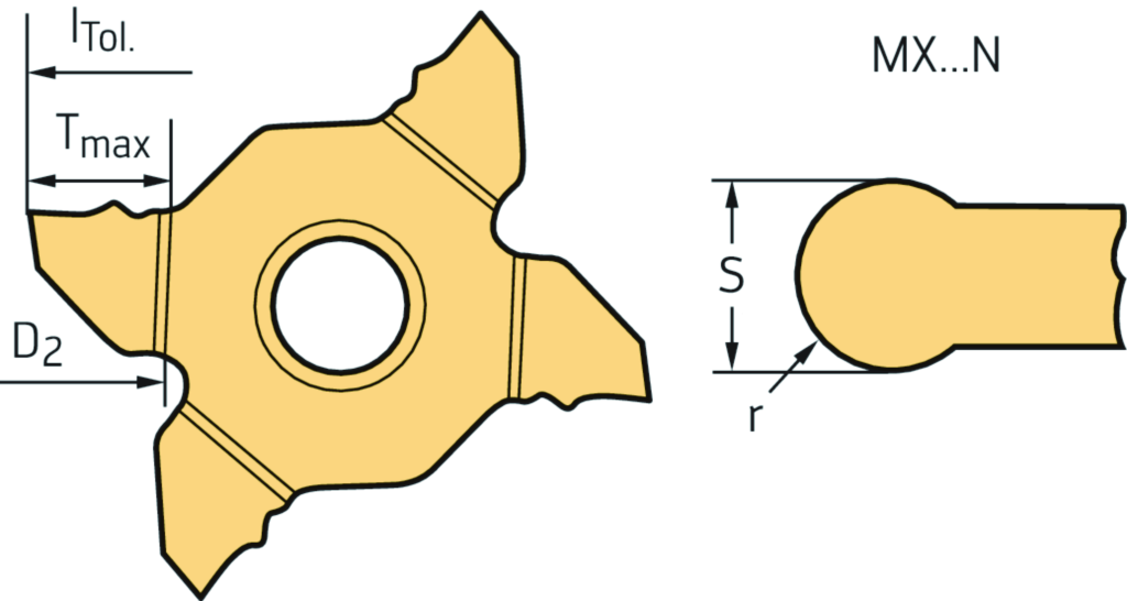Einstechen und Kopierdrehen – Schneideinsätze MX ...-RF5 • Neutral • WSM23G • Tiger·tec® Gold • s=4mm • r=2mm