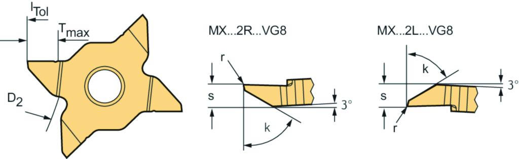 Einstechen und Stechdrehen 3° – Schneideinsätze MX ...-VG8 • links • WSM23S • Tiger·tec® Silver • s=2,8mm • r=0,05mm
