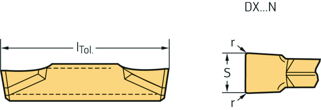 Einstechen und Stechdrehen – Schneideinsätze DX ...-UF4 • Neutral • WSM13G • Tiger·tec® Gold • s=2mm • r=0,2mm
