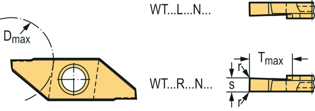 Einstechen und Stechdrehen – Schneideinsätze WT ...-UA8 • rechts • WSM23X • s=2,5mm • r=0,05mm