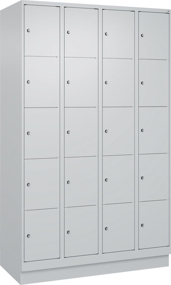 Fächerschrank CLASSIC B1200xT500xH1950 mm RAL 7035/7035, 4x5 Fächermit 100 mm hohem Sockel