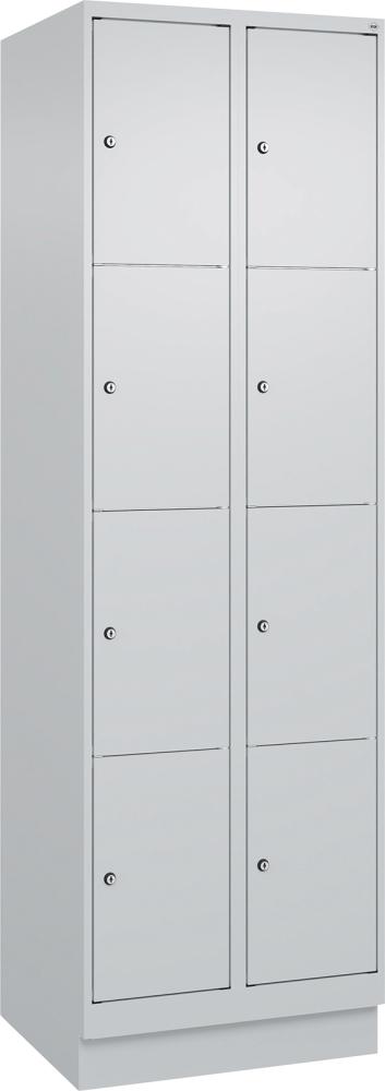 Fächerschrank CLASSIC B600xT500xH1950 mm RAL 7035/7035, 2x4 Fächermit 100 mm hohem Sockel