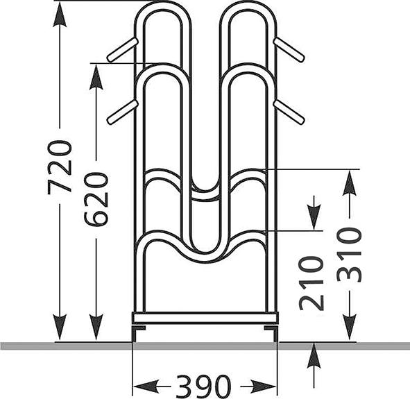 In den Standparkern können Fahrräder abwechselnd in Tief-/Hocheinstellung platzsparend geparkt werden. Diese Standparker bieten die best mögliche Standsicherheit für Fahrräder. • Material: verzinkte Stahlkonstruktion aus Rundrohrbügeln • Radabstand: 350 mm • Radeinstellung: wahlweise ein- oder zweiseitig Stellraumtiefe: • Radstellung 90°, einseitig: ca. 1850 mm • Radstellung 90°, zweiseitig: ca. 3200 mm • Vorderrad wird an drei Punkten gehalten • Austausch von Bügeln bei Bedarf (z. B. Beschädigung) möglich • Zerlegt, Montagematerial und -anleitung beiliegend • Auch für Mountainbikes geeignet, Bügelabstand für Reifenbreite bis 55 mm Info: Vorbereitet zur Reihenverbindung und Bodenbefestigung.