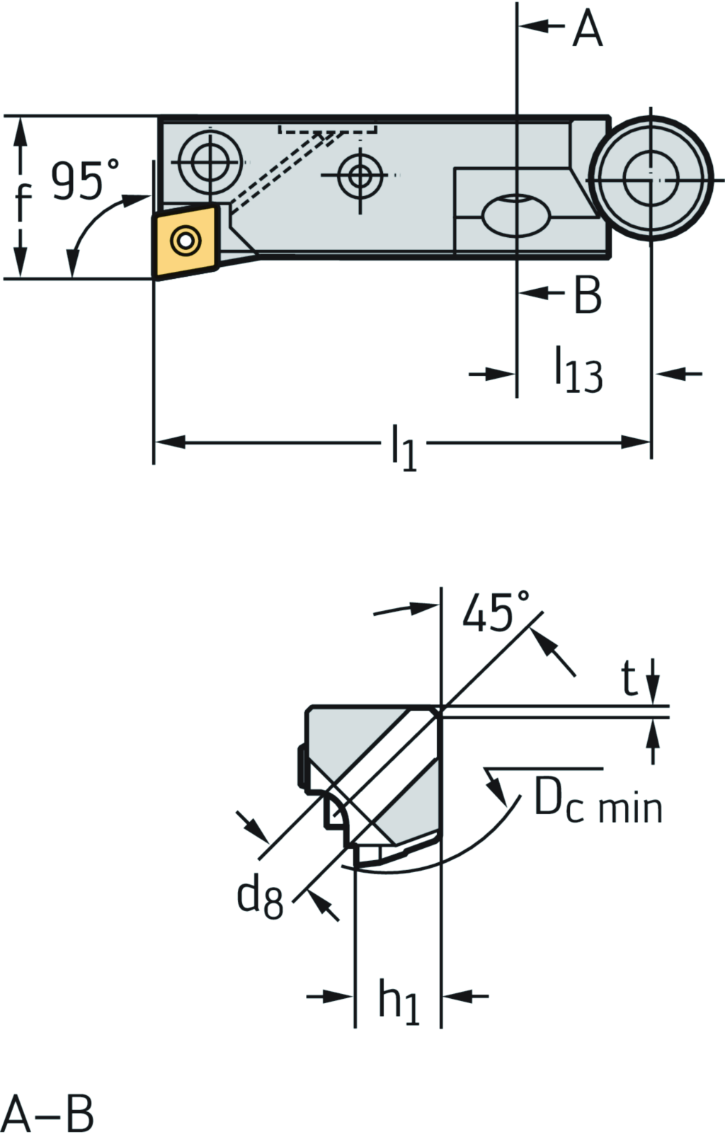 Feinbohr-Kurzklemmhalter FR763 • metrisch • rechts • κ=95° • Dc(min)=28mm