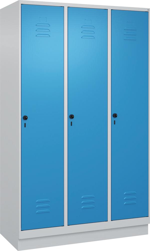 Produktinformationen "Garderobenschrank CLASSICB1200xT500xH1950 mm RAL 7035/5012, 3 Abteile mit 100 mm hohem Sockel"