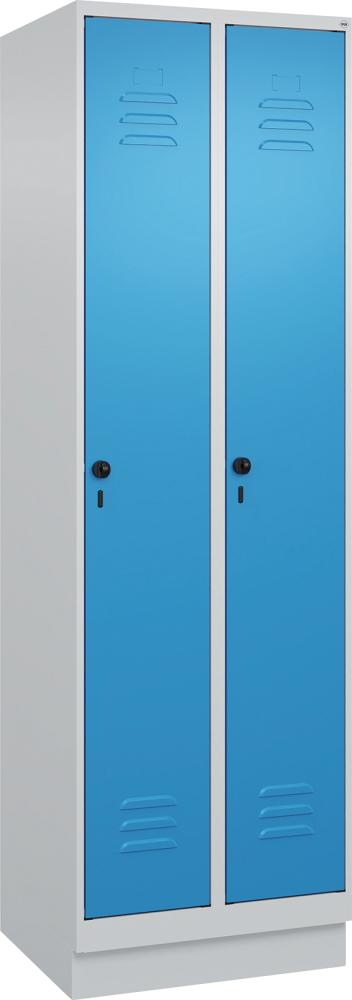 Garderobenschrank CLASSICB600xT500xH1950 mm RAL 7035/5012, 2 Abteile mit 100 mm hohem Sockel