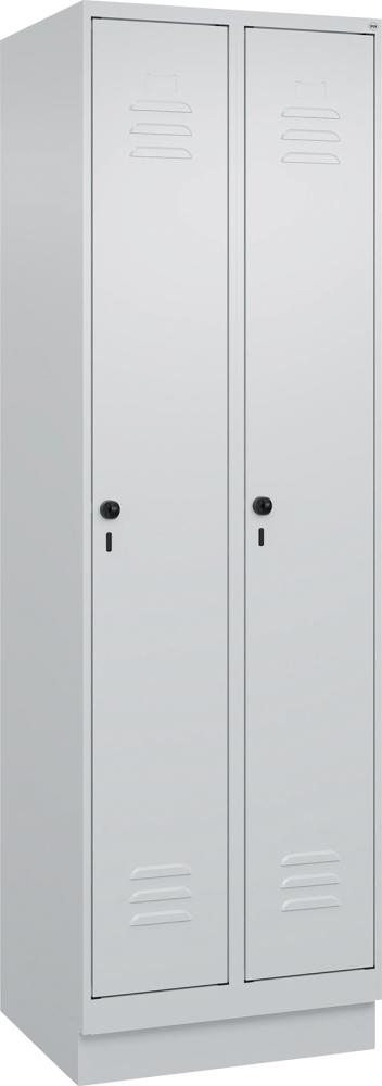 Garderobenschrank CLASSICB600xT500xH1950 mm RAL 7035/7035, 2 Abteile mit 100 mm hohem Sockel
