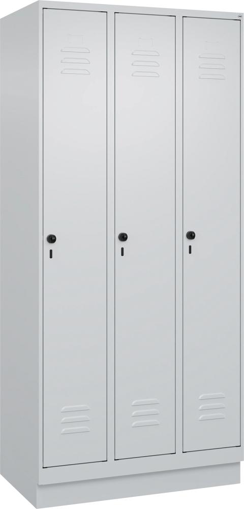 Produktinformationen "Garderobenschrank CLASSICB900xT500xH1950 mm RAL 7035/7035, 3 Abteile mit 100 mm hohem Sockel"