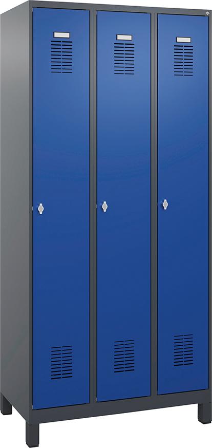 Garderobenschrank FORUM 3 Abteile RAL 7016/5010 Füße 7035 mit Füßen Selbstmontage