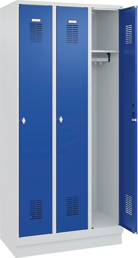 Garderobenschrank FORUM 3 Abteile RAL 7035/5010 Sockel 7035mit Sockel Selbstmontage