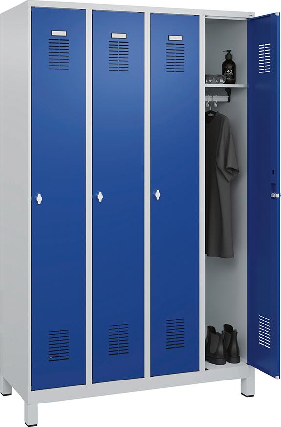 Garderobenschrank FORUM 4 Abteile RAL 7035/5010 Füße 7035 mit Füßen Selbstmontage