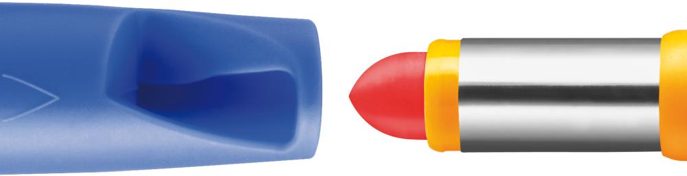 • Kappe mit integriertem Spitzer und Spezialclip zur Einhandbedienung