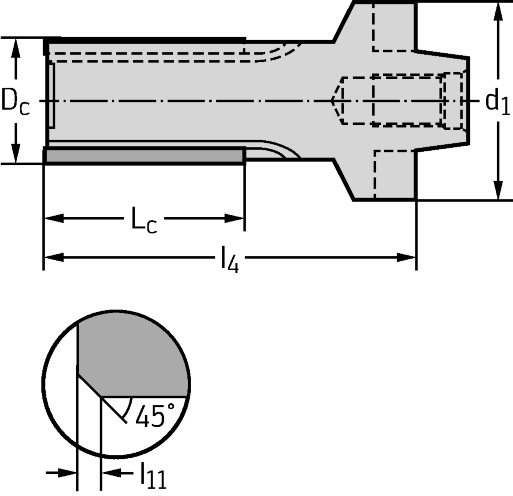 Gelötete Heli-Eckfräser F1682 • Modulare Aufnahme NCT • κ=90° • metrisch • Dc=40mm • Z=6