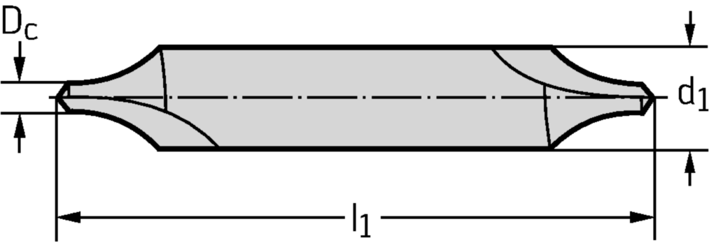 HSS-Zentrierbohrer K1113TIN • DIN 333-R • Zylinderschaft • Form R • Eingeschlossener Stufenwinkel° • Dc=4mm